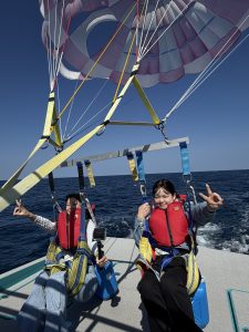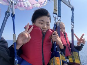 飛ぶ瞬間はキャー!って叫んでたけど、少ししたらあそこの海綺麗〜〜!!って色んな景色を楽しんでくれました🩵🤍
